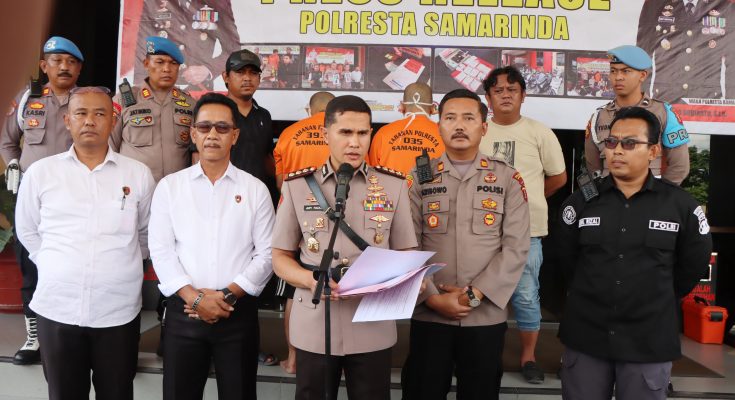 Kegiatan Press Release tersebut dipimipin langsung Kapolresta Samarinda Kombes Pol Dr. Ary Fadli, S.I.K.,M.H.,M.Si bertempat di Lobby Polresta Samarinda yang didampingi Kapolsek Sungai Pinang, Wakasat Reskrim dan Kasi Humas Polresta Samarinda, Senin (22/01/2024) Pukul 13.00 WITA.