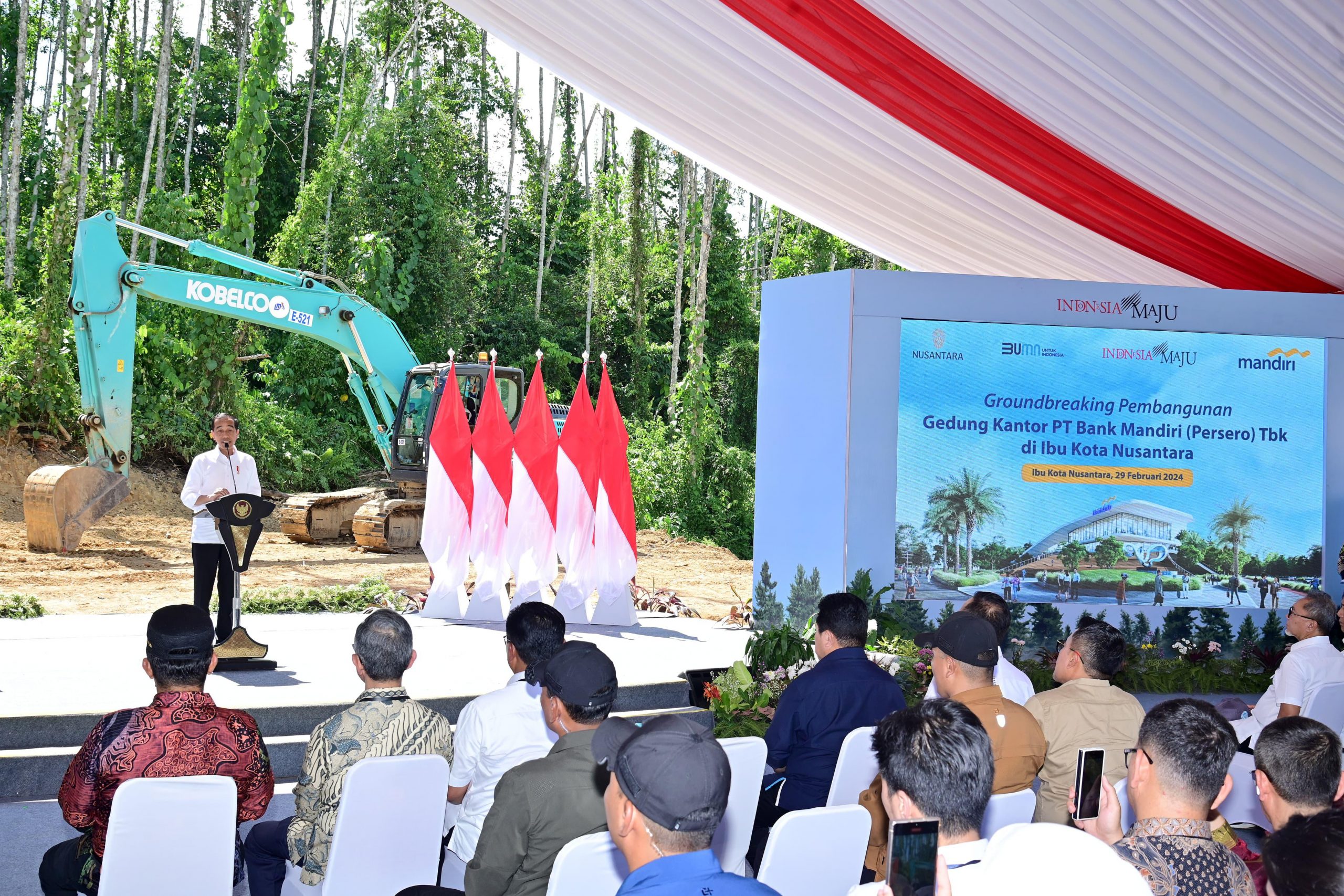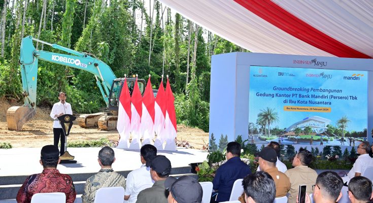 Portaletam.com – Presiden Joko Widodo melakukan peletakan batu pertama atau groundbreaking pembangunan Gedung Kantor PT Bank Mandiri (Persero) Tbk di Kawasan Ibu Kota Nusantara, Provinsi Kalimantan Timur, pada Kamis, 29 Februari 2024. Acara ini menandai langkah penting dalam pengembangan infrastruktur dan layanan digital di ibu kota baru Indonesia.