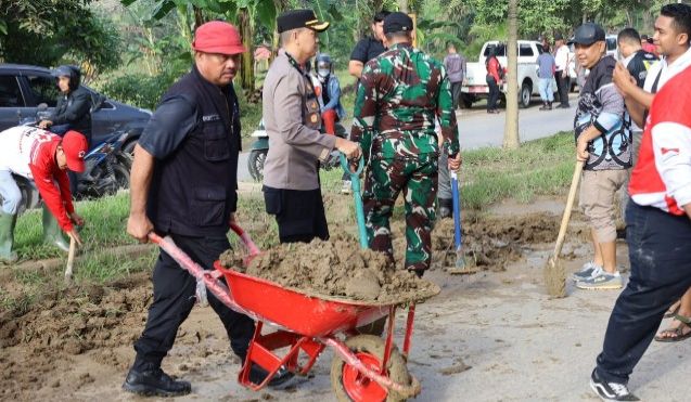 “Jalan 2 jalur ini selalu ada tanah yang menggenang dan menjadi lumpur, kalau tidak hati-hati bisa membahayakan pengendara. Makanya ditangani dulu secara gotong royong bersama instansi terkait,” Sebutnya.